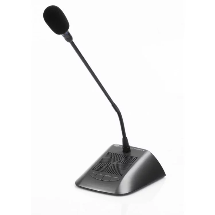 Unidad de micrófono de delegado BDE con función de hablar e indicador de activación por led. Esta unidad está equipada con un micrófono electret fijado a un vástago flexible con anillo de iluminación. El altavoz interno cuenta con control de volumen. Posibilidad de conectar auriculares. Esta unidad de delegado se suministra con un cable Y de 2 metros de preinstalación.