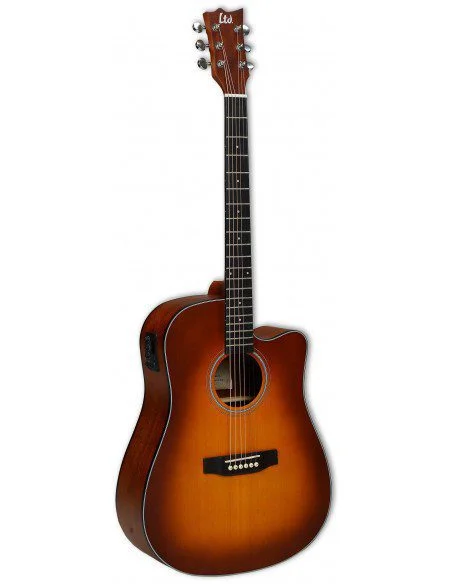 La ESP LTD AC/D-100 Antique Brown Sunburst Satin es una guitarra electroacústica tipo dreadnought con cutaway, fabricada con tapa de abeto, cuerpo de caoba y acabado satinado, diseñada para ofrecer sonido cálido y gran proyección. Incorpora preamp con ecualizador y afinador integrado, ideal para uso en vivo y práctica.