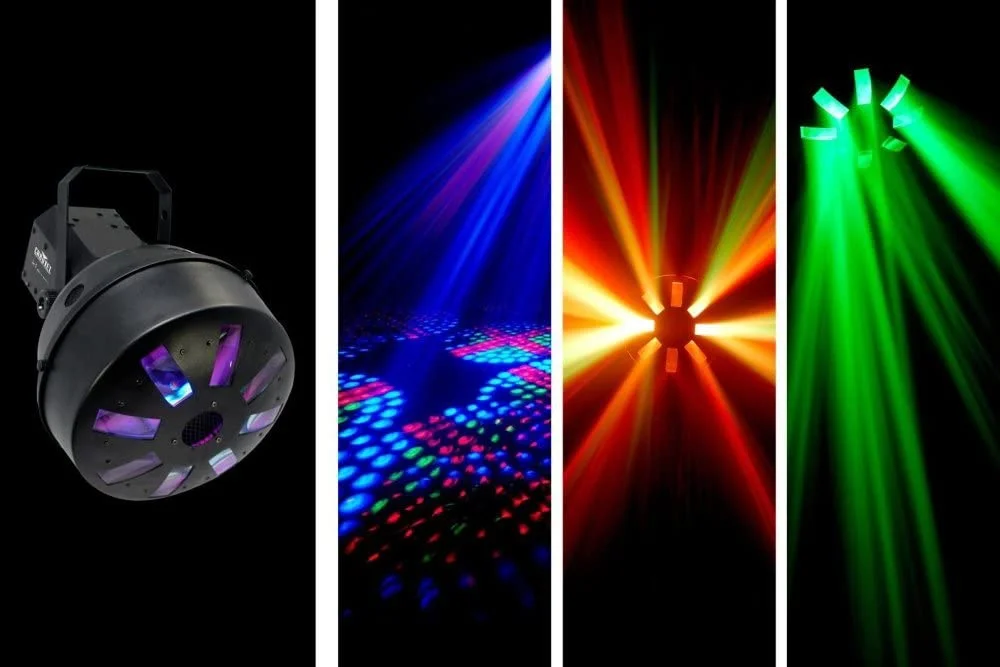 Dispara efectos llamativos con programas automatizados integrados a través del modo Maestro / Esclavo o DMX