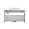 Gabinete estilo espineta disponible en un acabado simulado de palisandro o blanco, con un sistema de sonido estéreo de 30 vatios, 2 bocinas, atril integrado y tablero deslizable.