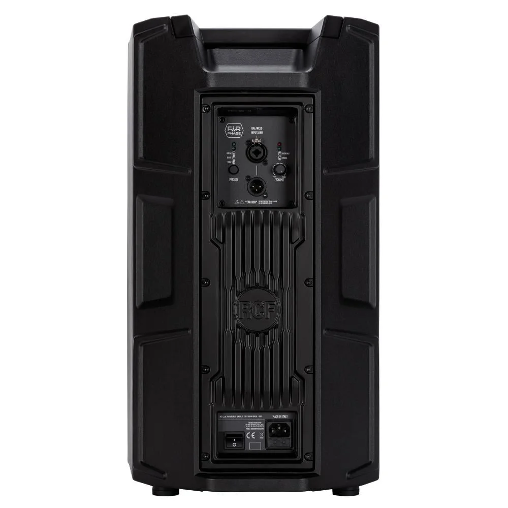 El amplificador más potente de su clase. Las mejoras de RCF en el diseño de los transductores los hacen más fuertes y potentes, por lo que el amplificador sigue la evolución. Con sus 2100 W de potencia, el amplificador de dos canales ART 9 de Clase D es un 50% más potente que los modelos anteriores, capaz de gestionar niveles de presión sonora extremadamente altos con un ataque ultrarrápido, una respuesta de transitorios realista y una pérdida de calor muy baja. El ART 9 es muy eficiente desde el punto de vista energético, por lo que no necesita un ventilador de refrigeración: el amplificador está unido a un intercambiador de calor de aluminio macizo en la parte trasera de la unidad, sin piezas móviles. Al estar conectado físicamente con el chasis interno, el amplificador queda firme y sólido dentro de la caja. El circuito de entrada presenta un nuevo diseño de baja distorsión con un limitador de seguridad avanzado, que mantiene el auténtico carácter de la señal de entrada a todos los niveles. Todos los amplificadores ART 9 están diseñados según la normativa EN62368-1 para ofrecer la máxima seguridad y presentan una sección de fuente de alimentación conmutada que une la alta eficiencia con el mínimo peso.